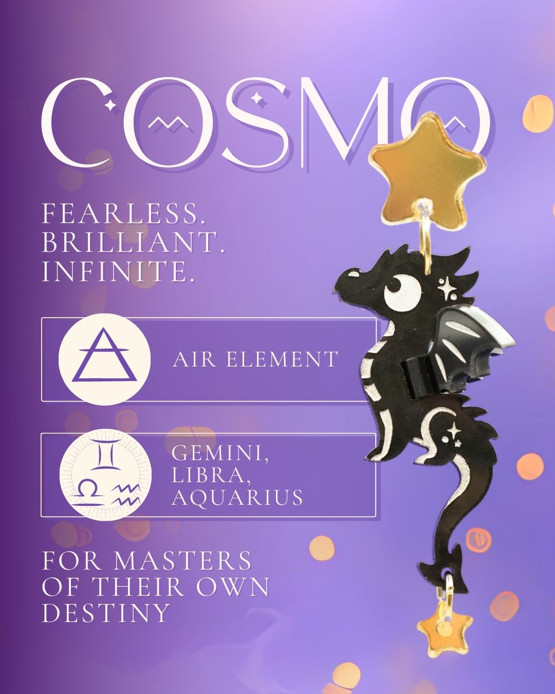 NEW 3D ‘Cosmo’ Dragon Dangles - Acrylic Dangle Earrings - Handmade Fantasy Jewellery
