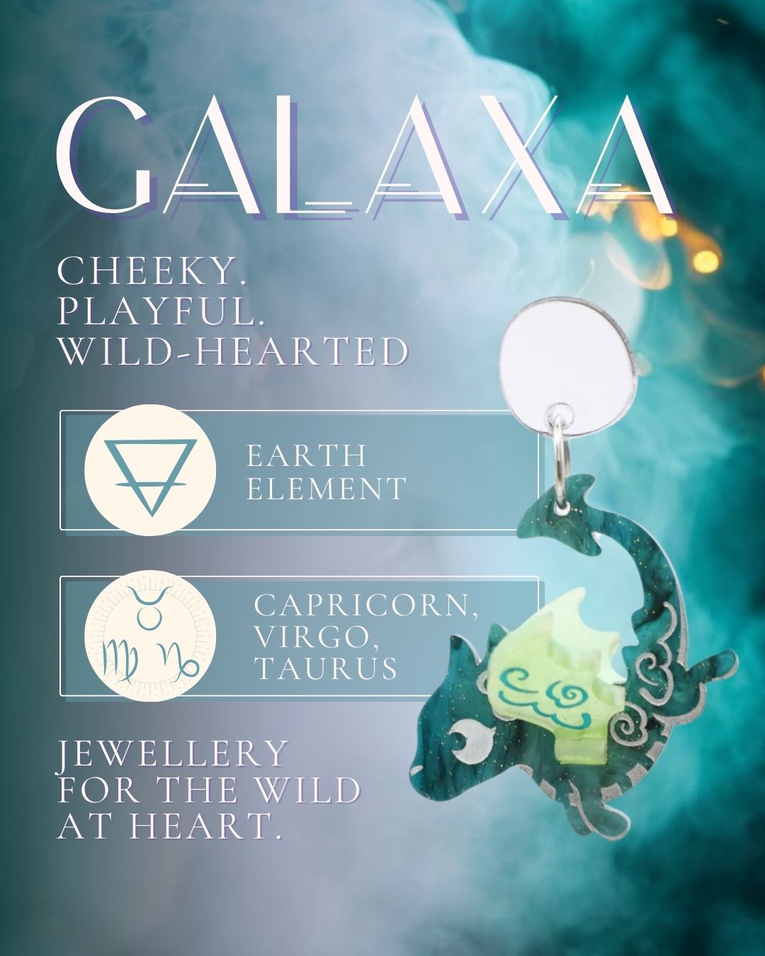 3D 'Galaxa' Teal Dragon Dangles - Acrylic Earrings - Handmade Fantasy Jewellery