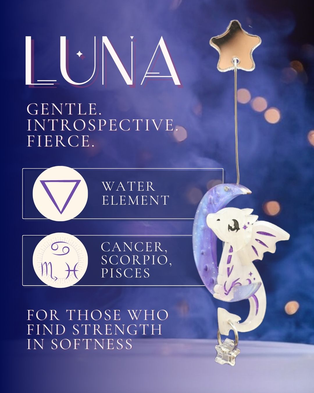 3D 'Luna' Moon Dragon - Acrylic Dangle Earrings - Handmade Fantasy Jewellery