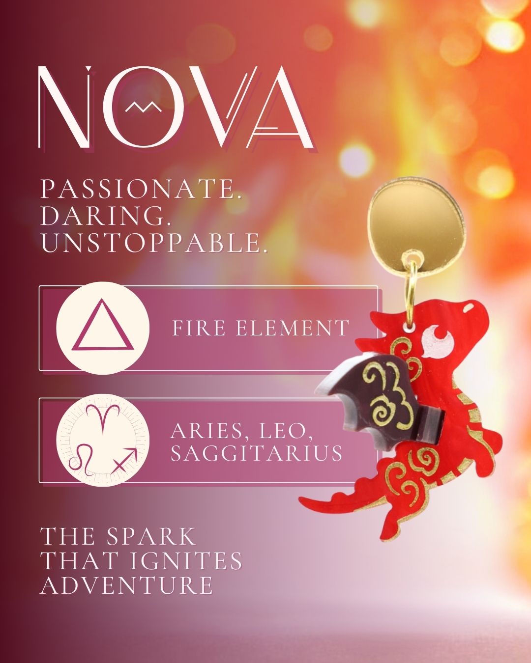 3D 'Nova' Dragon Dangles - Acrylic Earrings - Handmade Fantasy Jewellery