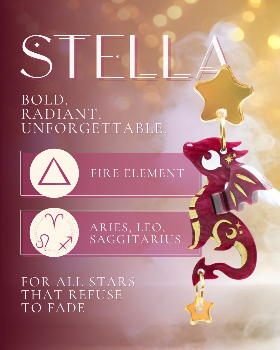 3D ‘Stella’ Dragon Dangles - Acrylic Dangle Earrings - Handmade Fantasy Jewellery